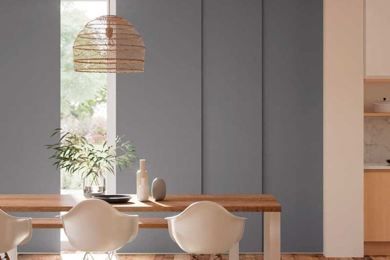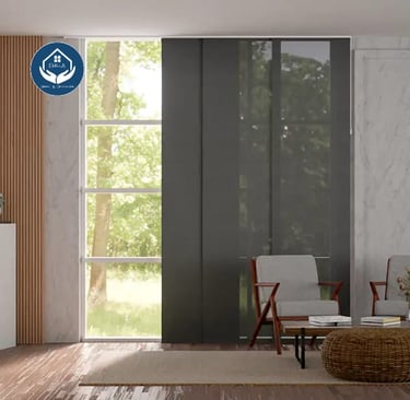Es ideal para espacios amplios y puerta ventanas, gracias a sus telos deslizantes que no obstaculizan y acentúan la sensación de amplitud del espacio.